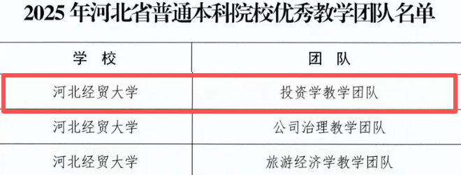 喜报!公司投资学教学团队入选2025年河北省普通本科院校优秀教学团队